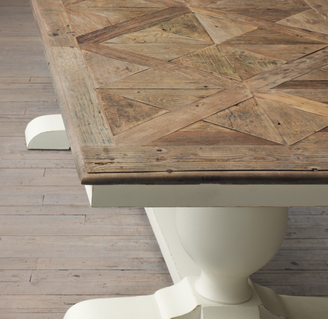 Paxton pompadour 240cm dining table, natural pine. The french table is one of our most popular dining tables combining the unique recycled elm timber which has been recycled from old buildings out of europe with the classic french style. It has a lovely grey paint finish base with a sculptured central column and four splayed legs. White fayence 4 drawer mirror sideboard. Parquet 84 reclaimed wood console table $ 1,899. it has a lovely grey paint finish base with a sculptured central column and four splayed legs. Glass top acrylic side table. This costco dining room table set is finished in umber, with a fixed top. Elm parquet top dining table dining tables rated 0 out of 5 Glass top round dining table dining tables rated 0 out of 5 € 685.00. The wow factor of this table, apart from the overall design, is the beautiful reclaimed elm wood parquet top which sits perfectly on the grey. Because of the nature of the recycled timber, every table is slightly different giving it a distinct uniqueness. Bring fresh style to your home with our dining furniture.